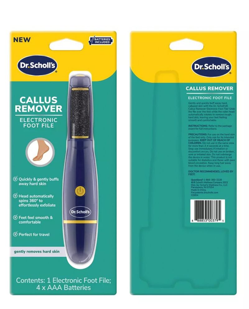 Revitalice sus pies sin esfuerzo con la lima electrónica para pies Dr. Scholl's, diseñada para eliminar la piel áspera y callosa de forma rápida y suave. Deslice la lima sobre sus pies mientras el cabezal giratorio gira automáticamente 360 grados para eliminar la piel áspera y dura, dejando sus pies suaves y cómodos. Útil tanto para hombres como para mujeres, la lima electrónica elimina fácilmente la piel endurecida para revelar las capas suaves y rejuvenecidas que se encuentran debajo. Su diseño compacto lo convierte en el compañero de viaje perfecto.