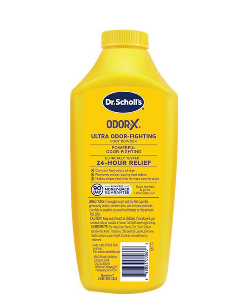 Dr. Scholl's Odor-X Ultra Odor-Fighting Foot Powder está clínicamente probado para brindar alivio durante 24 horas. Este talco combate eficazmente los malos olores, absorbiendo el sudor y manteniendo los pies frescos y secos durante todo el día. Gracias a su poderosa fórmula, ayuda a eliminar los olores desagradables y hace que los zapatos se sientan más cómodos. Perfecto para mantener la confianza y comodidad en cada paso.