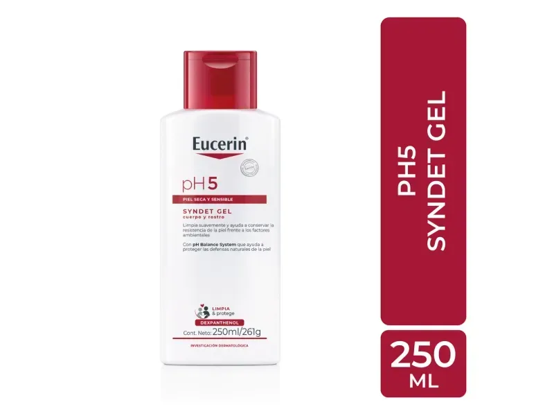 El gel dermatológico pH5 Eucerin es ideal para la limpieza diaria de la piel sensible del rostro y cuerpo. Su formulación syndet sin jabón ayuda a mantener el equilibrio natural de pH de la piel, dejando una sensación de suavidad y frescura. Viene en una presentación de 250ml.